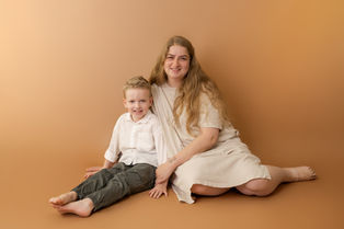 spontane gezinsfoto’s op een neutrale achtergrond.